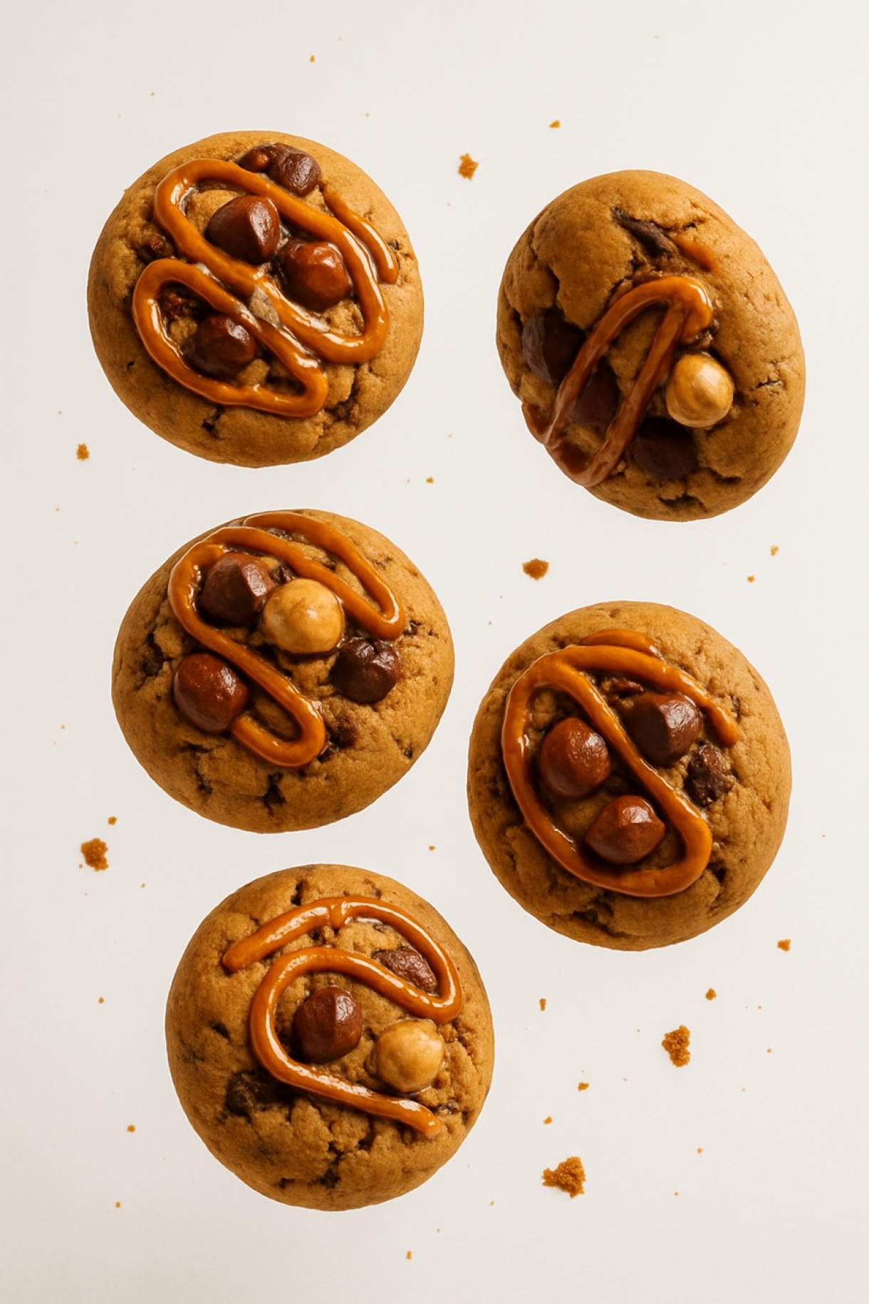 Na batedeira, misture o óleo de coco com os açúcares e bata até ficar uma pasta cremosa e aerada. Depois, acrescente o NotMilk, o purê de maçã, a baunilha, o sal e bata por mais 3 minutos. Adicione a farinha de trigo, o fermento, o bicarbonato e misture até dissolver. Por fim, coloque o chocolate e as avelãs e mexa até obter uma massa uniforme, mas não bata em excesso.