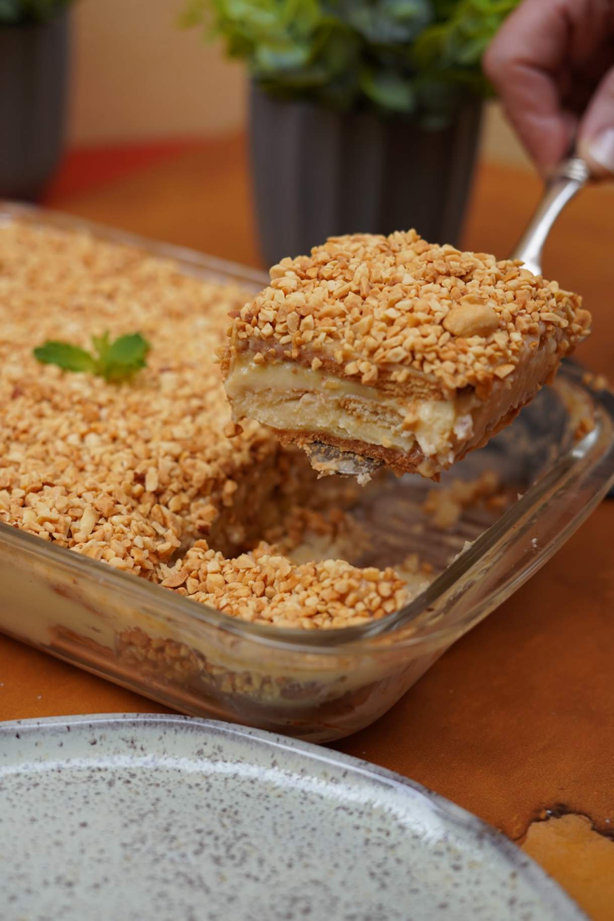 Dica: Para um sabor ainda mais intenso, adicione uma camada de pasta de amendoim saborizada entre as camadas de creme. Se quiser inovar, substitua a bolacha maisena por bolacha de chocolate para uma versão mais marcante.