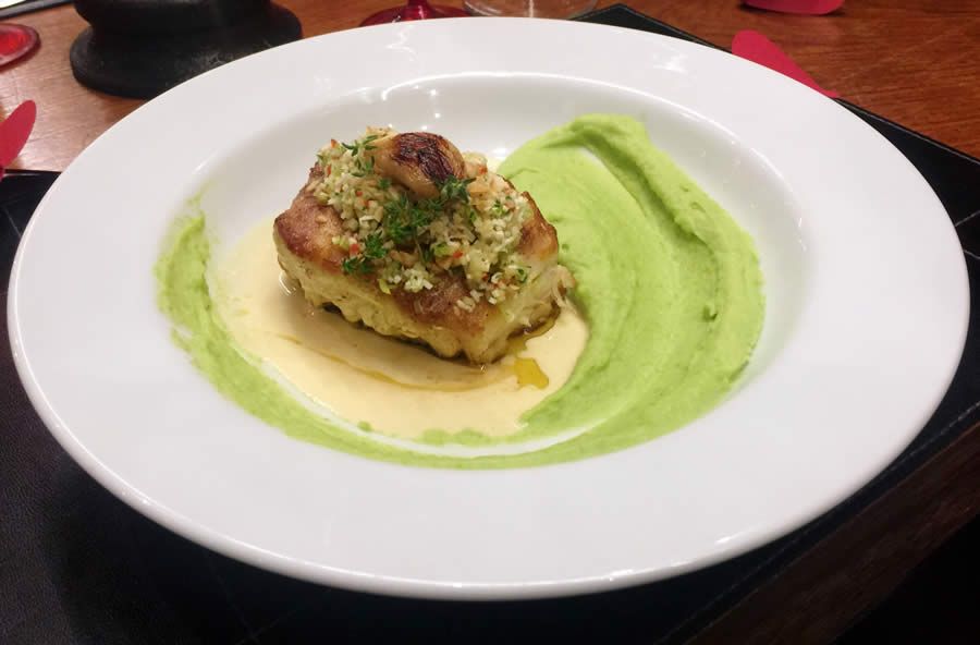 Fazer um vinagrete com a maça verde, aipo e o palmito pupunha e temperar com azeite sal e pimenta do reino e colocar por cima do peixe.