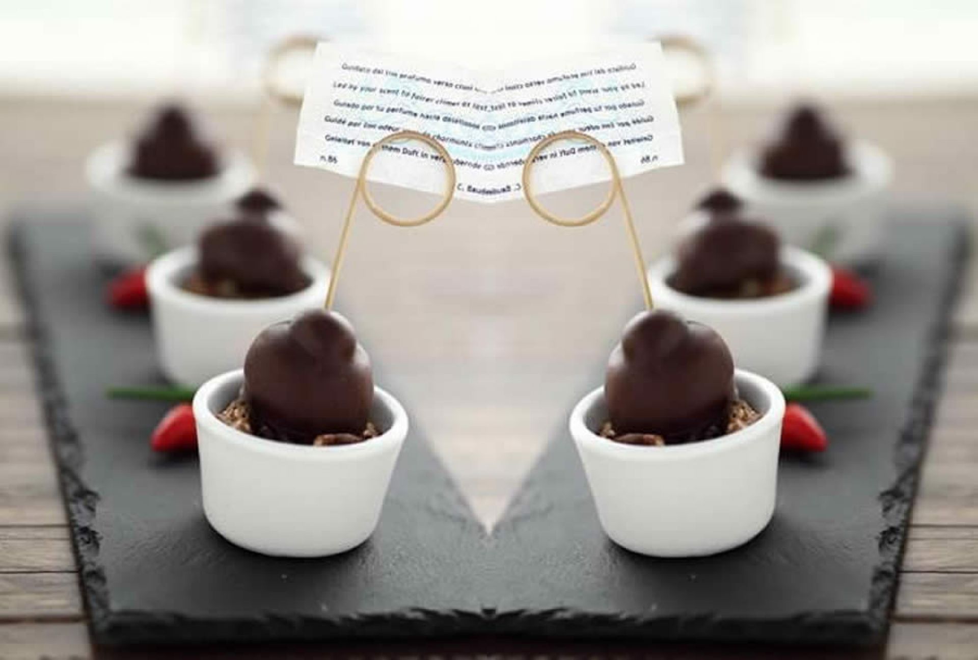 Misture bem, despeje o conteúdo em quatro forminhas pequenas e coloque os Baci Perugina® restantes por cima.