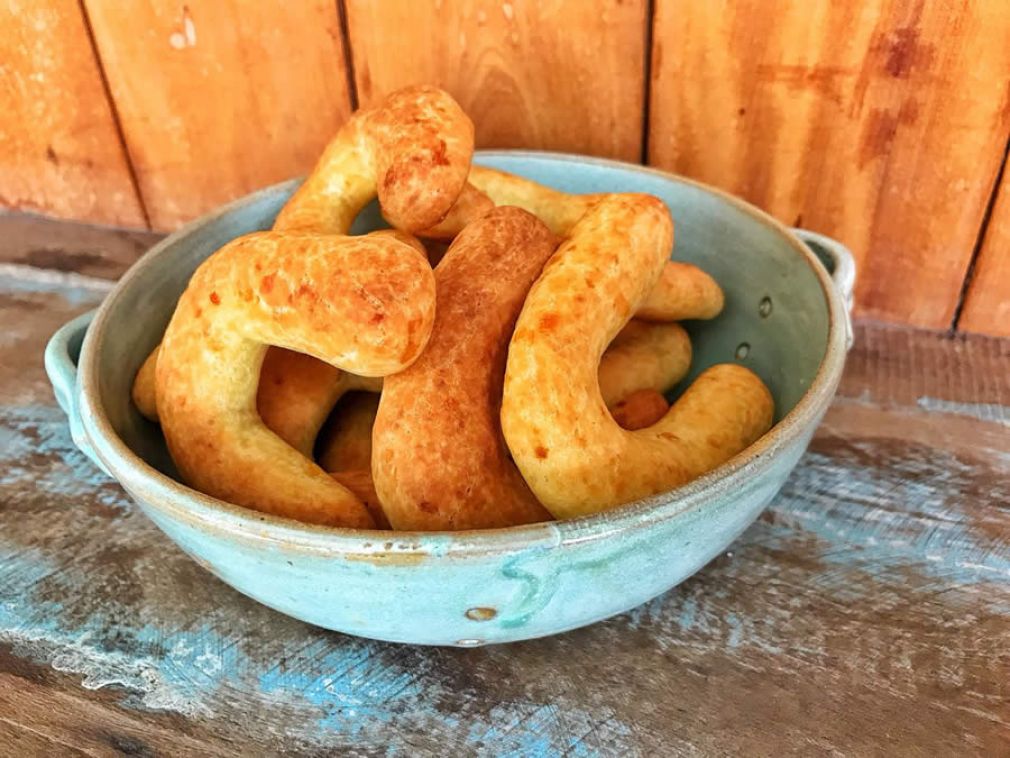 Misture os líquidos. Com uma espátula vá adicionando o polvilho. Quando não conseguir mais mexer com a espátula é hora de colocar a mão na massa e amassar até desgrudar das mãos. Modele em formato de ferradura e leve para assar em forno pré-aquecido por 30 minutos. Rende umas 20 unidades. Pode congelar. Só levar na fôrma para o congelador por umas 4 horas e depois guardar em sacos para congelar.