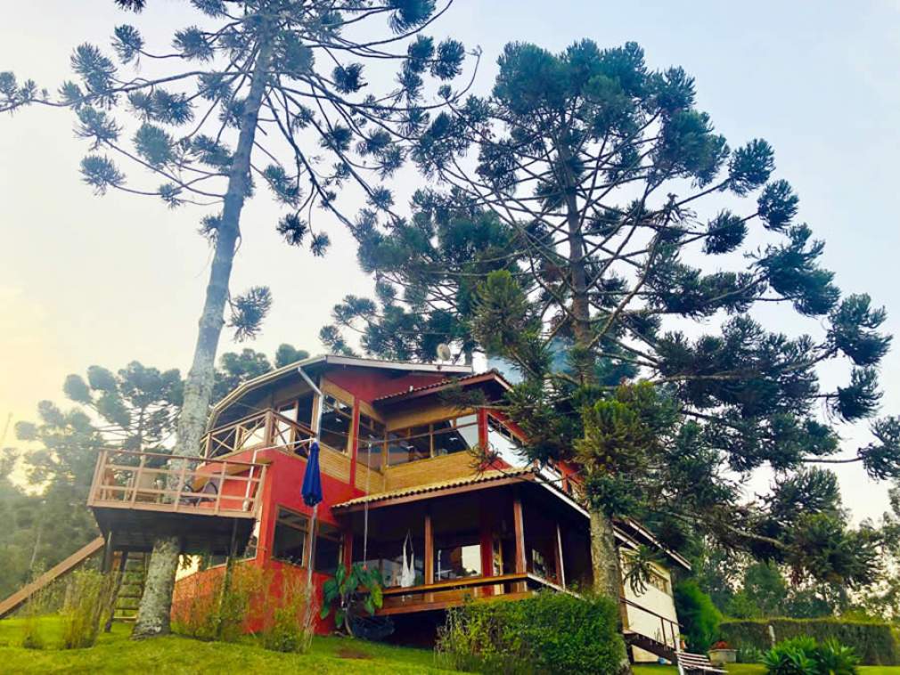 Em sua área externa, há um deck contemplativo fixado ao pé de uma árvore, de onde é possível observar a serra, as casinhas com suas chaminés e os gados pastando em pequenas fazendas. Um convite ao relaxamento e à reflexão. É possível ouvir, ao mesmo tempo, a cachoeira e o canto dos pássaros. Tudo para esquecer os problemas da cidade grande e aproveitar o descanso.