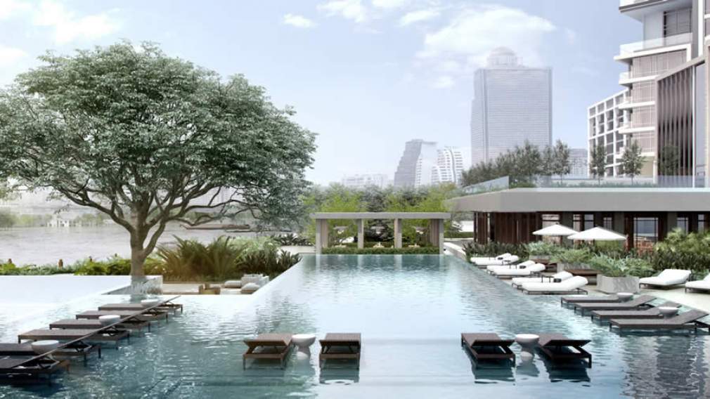 Situado a beira do rio de Chao Phraya, o arquiteto e designer Jean-Michel Gathy criou uma paisagem inovadora que integra espaços internos e externos com uma série de edifícios em cascata, pátios, terraços e lagos ao longo da Charoenkrung Road.