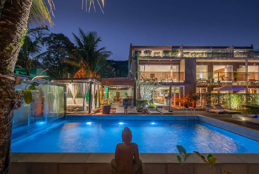 São apenas 13 suítes, o que garante atendimento impecável e sossego aos hóspedes, mesmo em feriados prolongados. Com duas piscinas e o solarium que ficam a poucos passos da praia, o casal pode aproveitar para curtir o sol entre um mergulho e outro, bem como os diferenciados drinks servidos pelo atento serviço de praia.