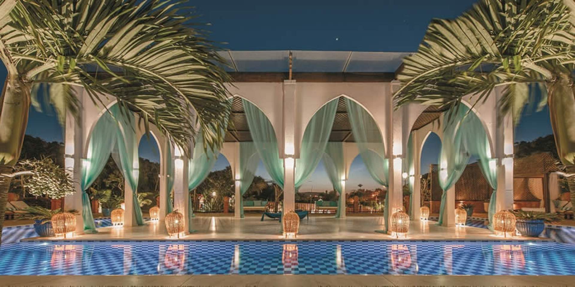 Duas piscinas cercadas de gazebos e jardins, lounge estilo marroquino para celebrações e realizações de cerimônias, spa com tratamentos e terapias para relaxar a mente e o corpo. e sauna a vapor são alguns recursos que o hotel oferece para uma viagem à dois.