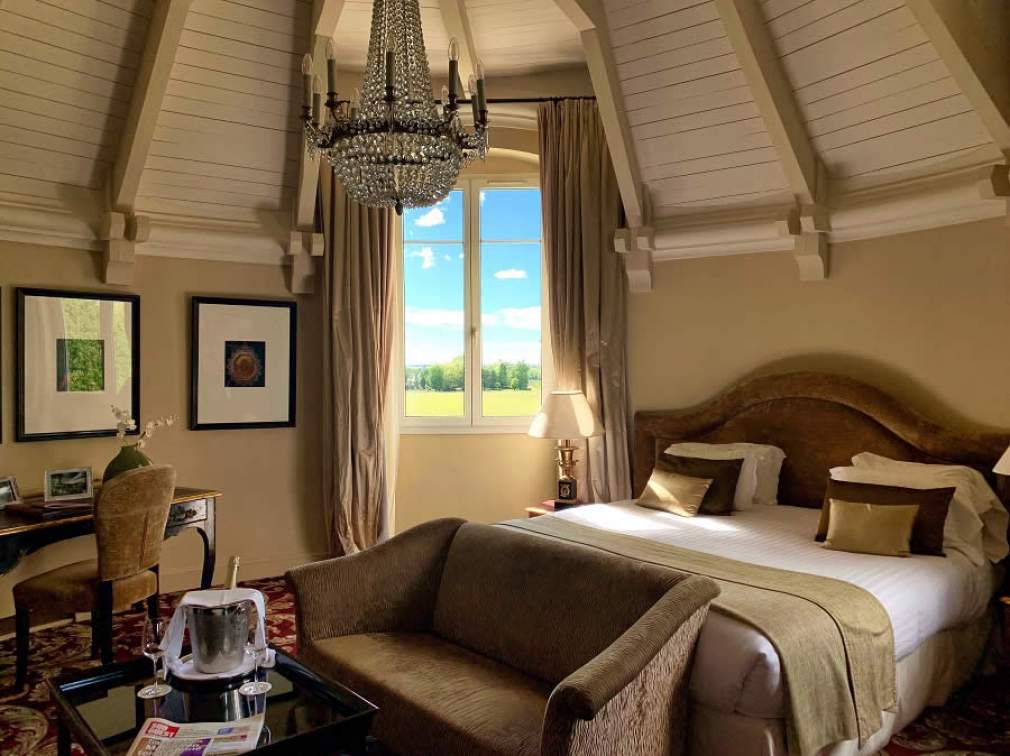 Divididas em seis categorias, as acomodações do Château Grand Barrail Hôtel são decoradas com elementos que unem toques clássicos, como a cama com dossel (exclusividade da Royal Suite), a nuances contemporâneas, entre elas, caixas de som bluetooth e máquinas de Nespresso.