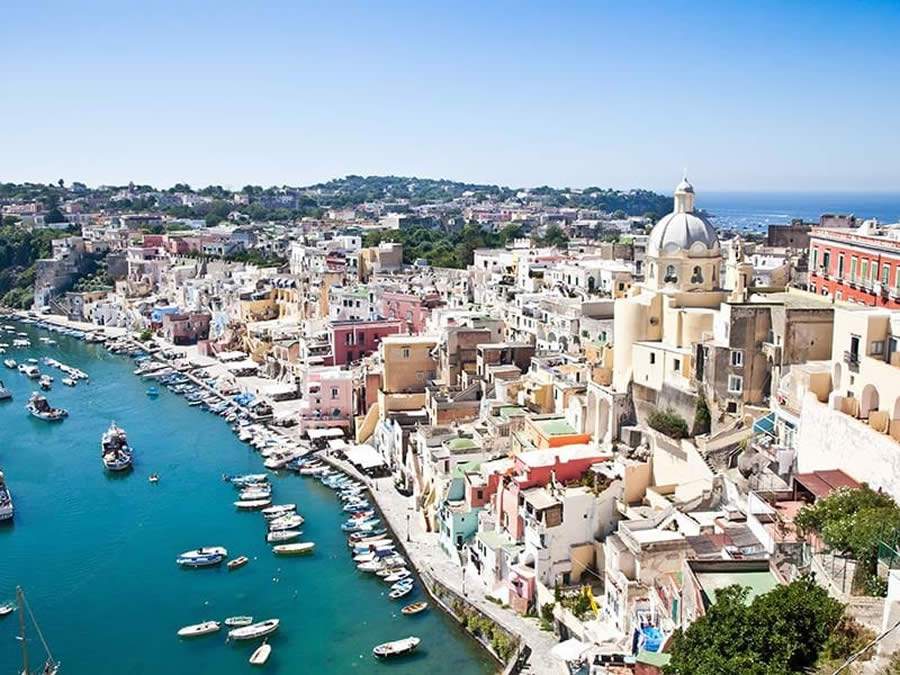 Procida, a menor ilha do arquipélago da Campânia, foi escolhida por diretores renomados como o cenário ideal para várias obras-primas do cinema. De origem vulcânica, Procida também está ligada à Ilha de Vivara por uma ponte estreita.