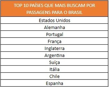 Estados Unidos e Alemanha são os países que mais buscam passagens aéreas para o Brasil