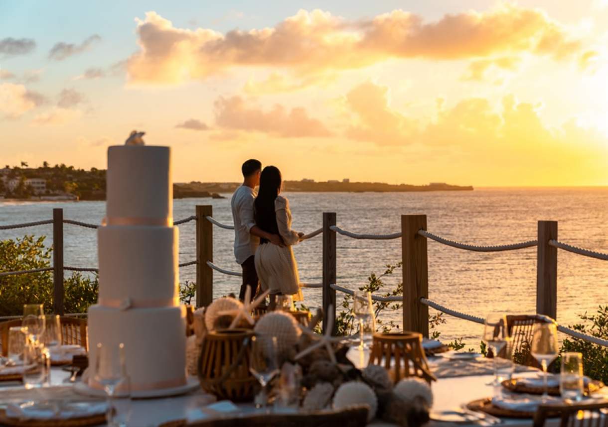 O exclusivo resort em Maundays Bay oferece quatro pacotes onde o mais simples inclui uma cerimônia, uma garrafa de champanhe, um bolo de casamento, um buquê de flores e um jantar privado de três pratos na praia para dois. Uma comemoração mais elaborada pode contar com fotógrafo, cinegrafista, cabeleireira, manicure e pedicure, para citar alguns acessórios.