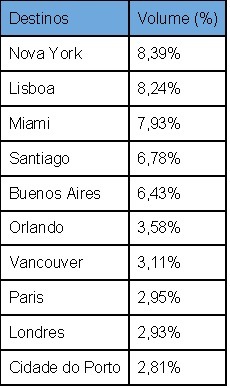 No continente europeu, Portugal elege as cidades de Lisboa, com 8%, e Porto, com 2,8% das buscas, conquistando os corações dos brasileiros. Mas há quem preferiu o verão francês e britânico, nas movimentadas capitais Paris e Londres, em que ambas conquistaram 2,9% das passagens.