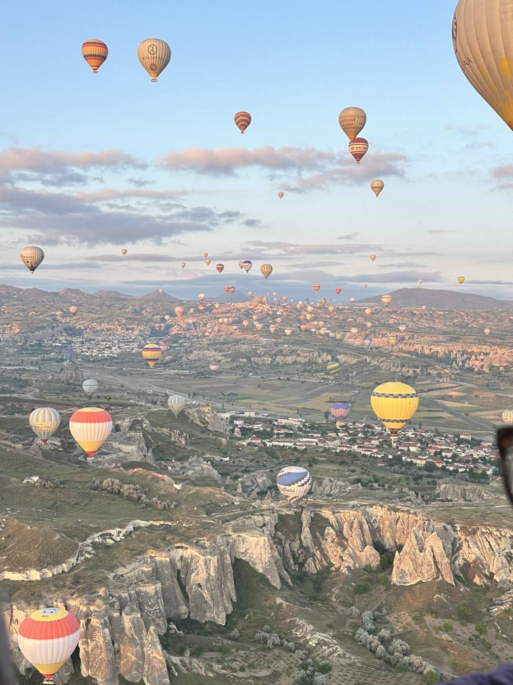 E, de fato, o brasileiro está redescobrindo a Turquia. Dados do Ministério de Cultura e Turismo do país apontam que, em 2022, foram quase 80 mil brasileiros turistas na Turquia, o que representa mais de 450% comparado com o ano anterior, já que, em 2021, havia restrições impostas pela pandemia do coronavírus. Muitos turistas, inclusive, vão em busca do passeio de balão pela Capadócia, para voar por algumas das paisagens mais lindas da região e do mundo. De cima do balão, o turista pode observar campos, vales, morros, animais selvagens, casas em cavernas, cidades e formações rochosas da região. “É um passeio que transmite paz e que faz a gente sentir a natureza exuberante”, ressalta Giullia.