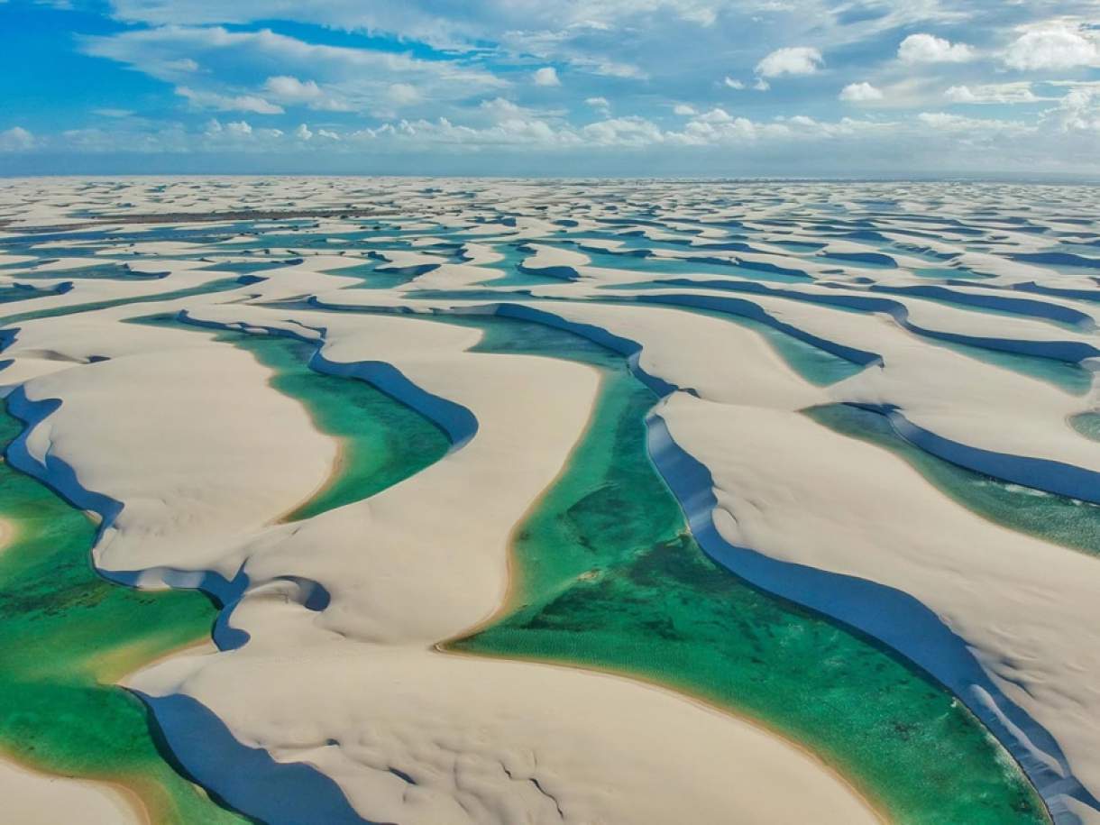 Localizados na região Norte do litoral do estado do Maranhão, os Lençóis Maranhenses são uma vasta área desértica de dunas de areia branca, entremeadas por lagoas sazonais de água da chuva, e abrange diversos municípios da região. O Parque Nacional dos Lençóis Maranhenses ocupa uma área de 155 mil hectares e pode ser acessado pelas cidades vizinhas de Barreirinhas e Santo Amaro do Maranhão. É possível realizar passeios como o Circuito da Lagoa Azul ou da Lagoa Bonita, e visitar a Lagoa das Emendadas e o Canto de Atins. Os turistas ainda podem aproveitar as praias de Caburé e Atins.