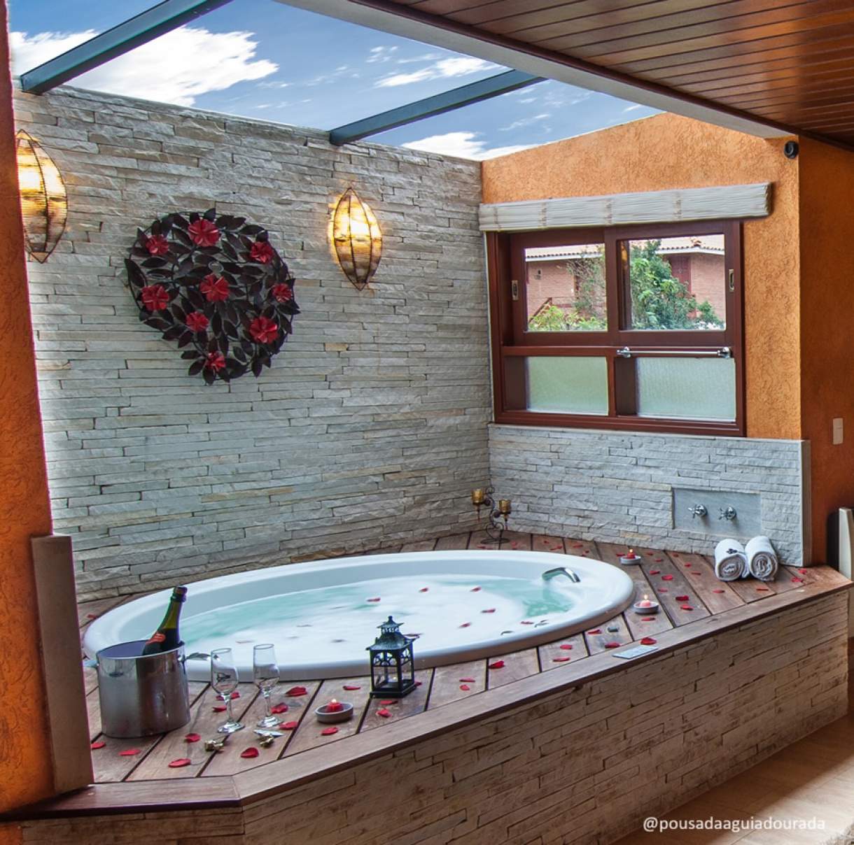 Os casais encontram o cenário perfeito nas suítes com atmosfera intimista e romântica. Todas possuem banheira e lareira integrada ao quarto, decoração charmosa e imensas camas que convidam ao descanso. Disponível em algumas categorias, destaca-se o teto skylight, que permite ao casal observar as estrelas enquanto curte a imersão na banheira dupla de hidromassagem.