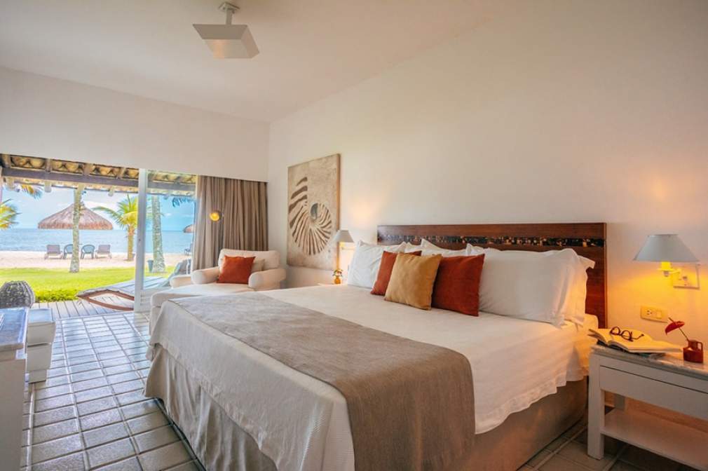 São 158 apartamentos disponíveis, a maioria com vista para o mar calmo da praia de 1km de extensão. Reservas e mais informações em https://portobelloresort.com.br/.