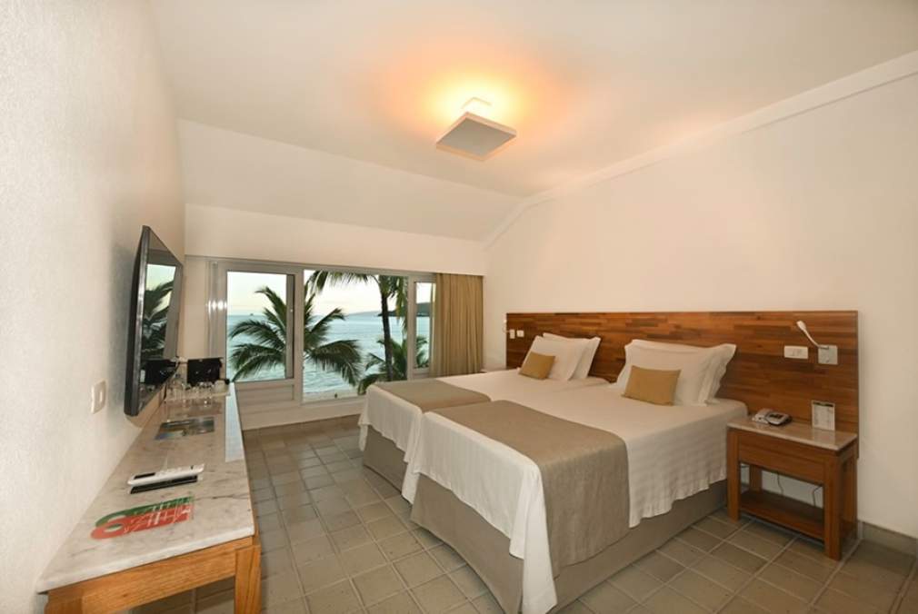 São 158 apartamentos disponíveis, a maioria com vista para o mar calmo da praia de 1km de extensão. Reservas e mais informações em https://portobelloresort.com.br/.