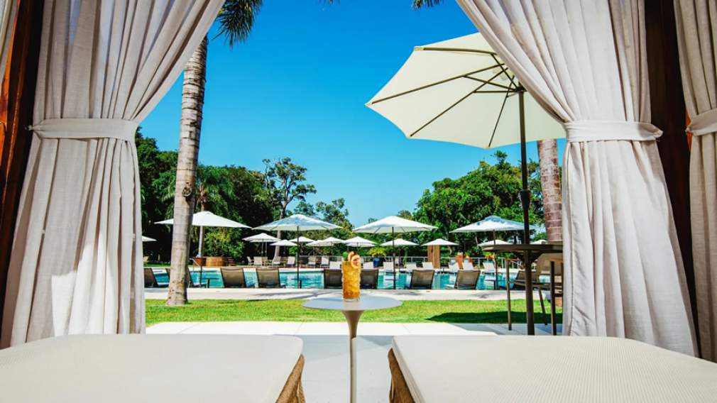 Inserido numa área de 113 mil metros quadrados, o hotel encanta logo de cara pela elegante arquitetura do prédio principal. São 9 mil m² cercados por belos jardins e pela natureza intocada do Parque Nacional do Iguaçu, que faz do empreendimento o mais próximo das Cataratas, garantindo comodidade aos hóspedes que visitam o destino. Com opções tanto para casais quanto para famílias, os 124 apartamentos, recentemente reformados, entregam espaços charmosos, luxo discreto e muito conforto. Algumas suítes oferecem acesso direto à piscina e vista do pôr do sol sem precisar sair da habitação.