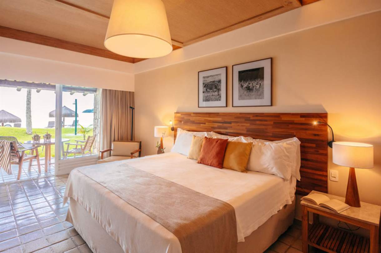 São 158 apartamentos disponíveis, a maioria com vista para o mar calmo da praia de 1km de extensão. Reservas e mais informações em https://portobelloresort.com.br/.