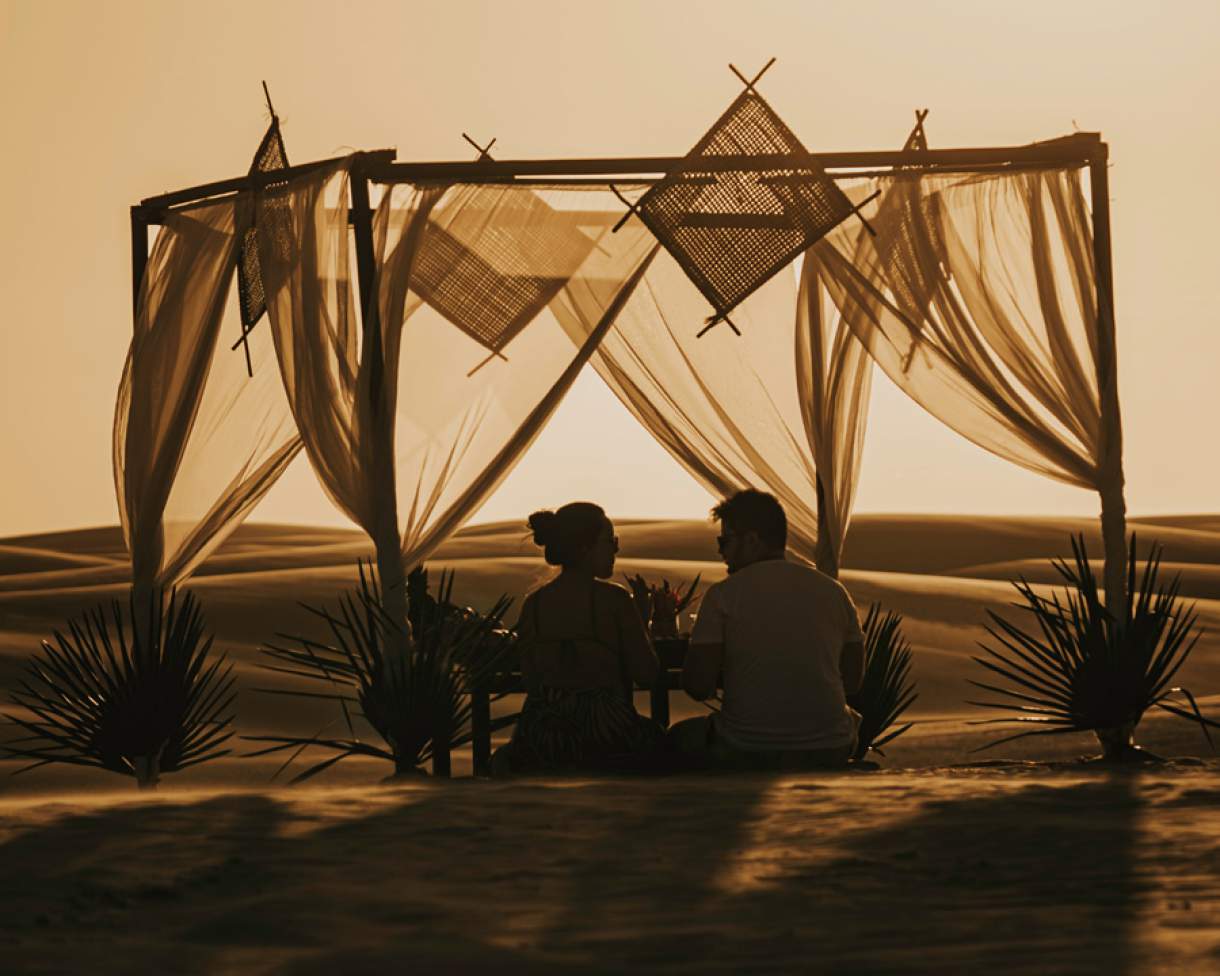 Piquenique ao pôr do sol nas dunas — Em veículo 4x4, os visitantes são conduzidos até o local onde está montada uma estrutura rústica sobre uma das dunas dos Lençóis Maranhenses, com tenda, almofadas, comidas e bebidas, além da vista deslumbrante do Parque durante o pôr do sol. Essa experiência intimista costuma ser bastante apreciada por casais, famílias ou grupo de amigos.