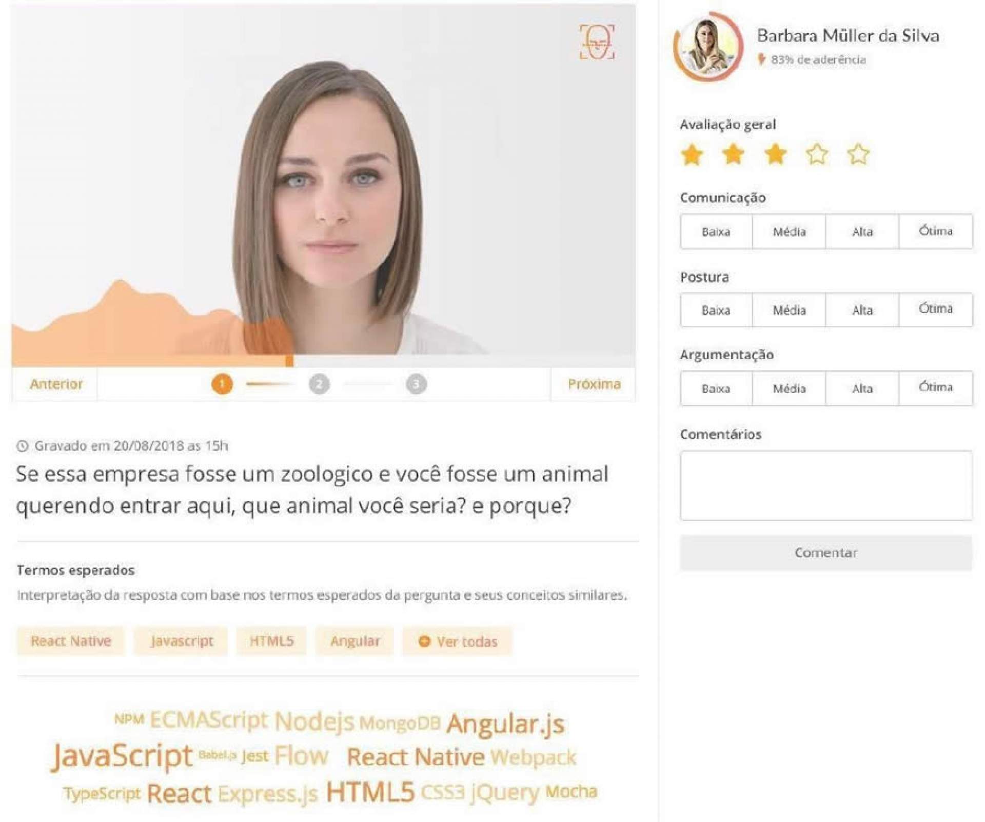 "Digamos que a entrevista seja para um cargo da área financeira, na medida em que o candidato usa termos inerentes à área, como "orçamento", "negociação", "balanço", etc. tudo isso fica registrado e ajuda o RH a compreender um pouco mais da experiência do candidato nos primeiros contatos. Essas palavras mostram se o candidato tem aderência à vaga proposta. Isso é apenas um exemplo aleatório, mas que faz parte da ferramenta. Existem muitas outras aplicações pensadas especificamente na rotina dos profissionais de Recursos Humanos, como a utilização de um score, que ajuda a pontuar o desempenho do candidato durante essa entrevista por vídeo", conta Leonardo, da VAGAS.com.