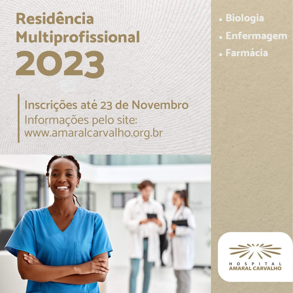 Está aberto período de inscrições do processo seletivo para Residência Multiprofissional em Atenção em Oncologia para início em 2023, do Hospital Amaral Carvalho. Com aprovação do Ministério da Educação, a especialização tem dois anos de duração, com direito a bolsa de estudos no valor de R$ 4.106,09. As inscrições podem ser feitas até o dia 23 de novembro.