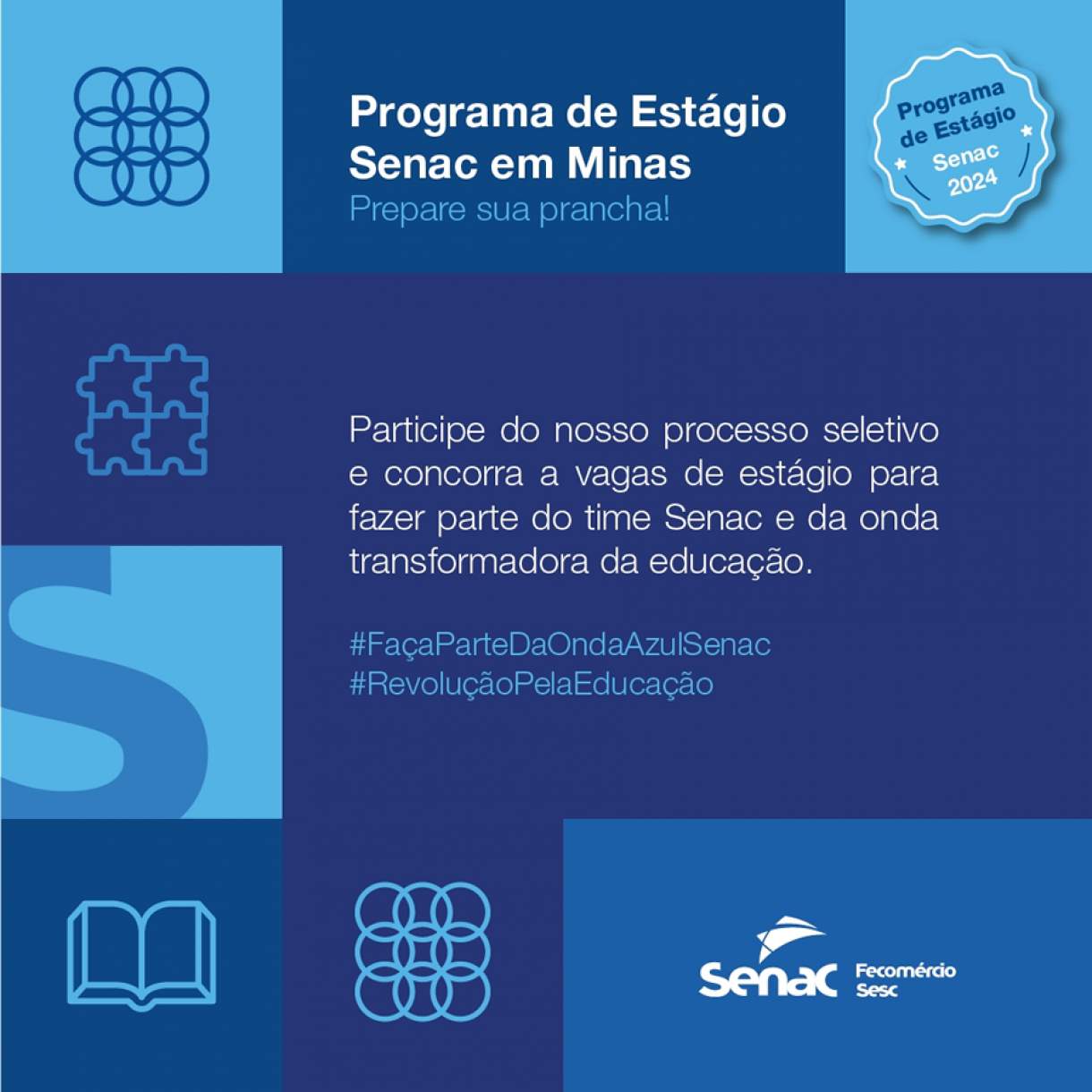 Senac em Minas promove Programa de Estágio para estudantes de nível técnico e superior Senac em Minas promove Programa de Estágio para estudantes de nível técnico e superior