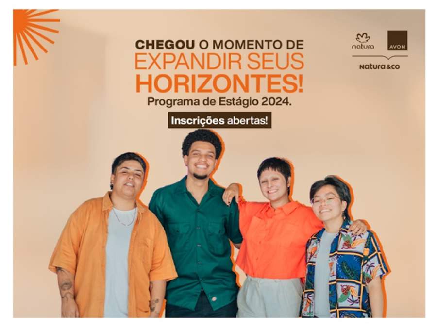 A Natura e a Avon estão com inscrições abertas até 24 de junho para o Programa de Estágio de 2024. Alinhado às metas de diversidade e inclusão de Natura &Co, o processo seletivo destina 70% das vagas para mulheres e pessoas autodeclaradas negras, além de 5% para pessoas com deficiência (PCD) e pessoas não cis. São cerca de 100 oportunidades oferecidas nas cidades de São Paulo (SP), Cajamar (SP), Cabreúva (SP), Interlagos (SP) e Benevides (PA). As inscrições podem ser realizadas on-line pelo link.