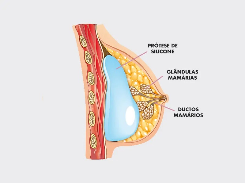 - Para colocar a prótese de silicone, o médico não precisa mexer na glândula mamária e nem nos ductos. Afinal, ele faz a incisão e insere o silicone por trás do tecido glandular.