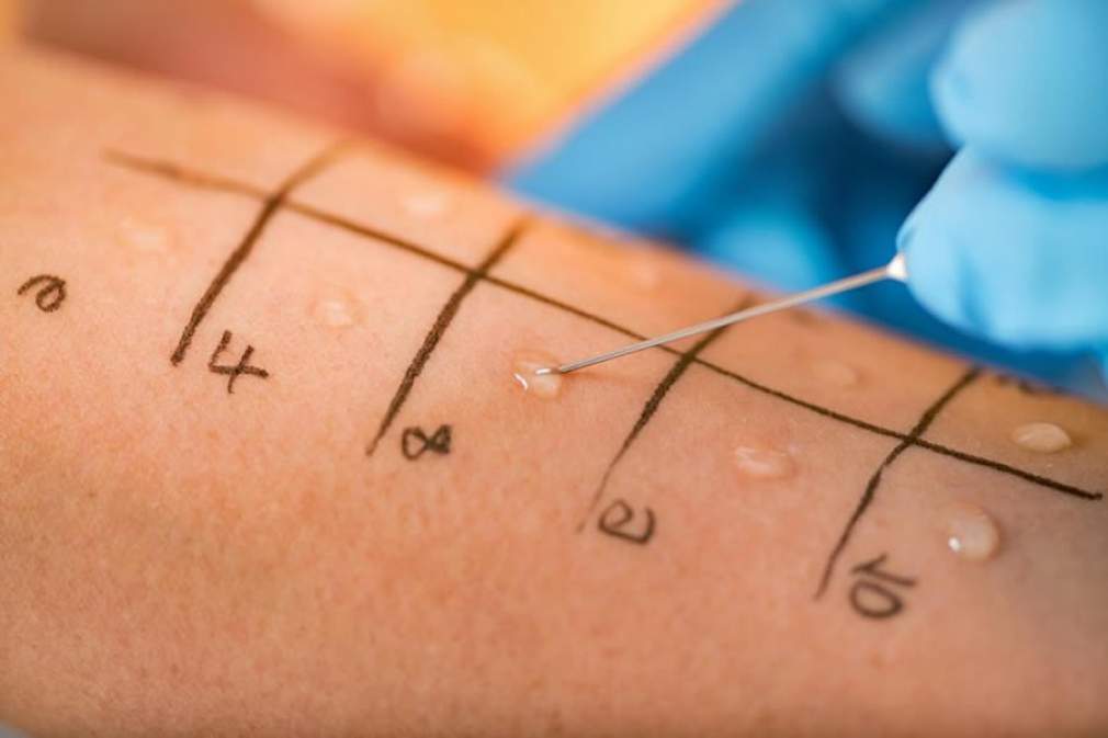* Teste de Prick ou teste de alergia no antebraço, onde uma substância alérgica é pingada no antebraço do paciente e após um período é verificado se houve alguma reação.