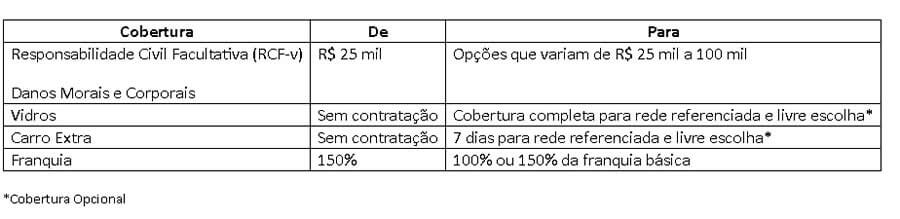 - Cláusula de carro extra de 7 dias (rede referenciada ou livre escolha).