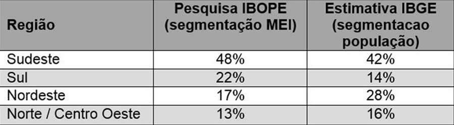 Esse tipo de empreendedorismo também se mostra uma atividade mais solitária: 55% do grupo afirmam tomar decisões de gestão sem a interferência de outras pessoas. Em termos geográficos, destaque para a região Sul que concentra 22% dos MEs e MEIs versus 14% da distribuição populacional estimada pelo IBGE. Já a região Sudeste concentra 48%; Nordeste 17% e o Centro-Oeste e Norte possuem 13% da amostra.