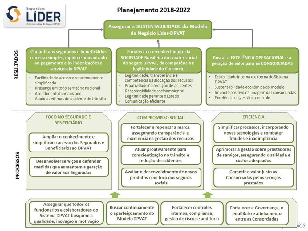 A Seguradora Líder divulgou, recentemente, seu Planejamento Estratégico para o período 2018-2022. O plano representa uma estratégia unificada e foi desenvolvido com o objetivo de garantir aos beneficiários acesso simples, rápido e humanizado ao pagamento das indenizações e aos serviços do Seguro DPVAT.