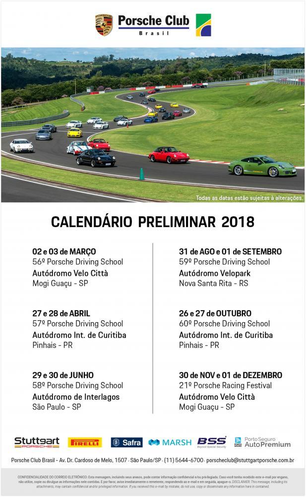 O Porsche Club do Brasil é o maior da América Latina. No mundo, o Clube agrega mais de 110 mil membros em 510 instituições. A Porsche Driving School está em sua 56ª edição e a primeira deste ano, dias 2 e 3 de março, será realizada no Autódromo Velo Città, em Mogi Guaçu, a 180 km da capital paulista. O autódromo tem um dos mais modernos e seguros circuitos do país, com infraestrutura completa para competições, test-drives, lançamentos da indústria automotiva, entre outros. Os autódromos de Interlagos, Internacional de Curitiba e Velopark também receberão o Porsche Driving School.