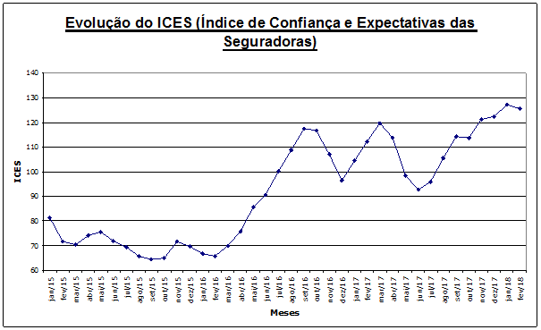 No mês de fevereiro, o setor de seguros continuou otimista (bem acima de 100 pontos), mas sofreu leve ajuste negativo, em um processo de acomodação.