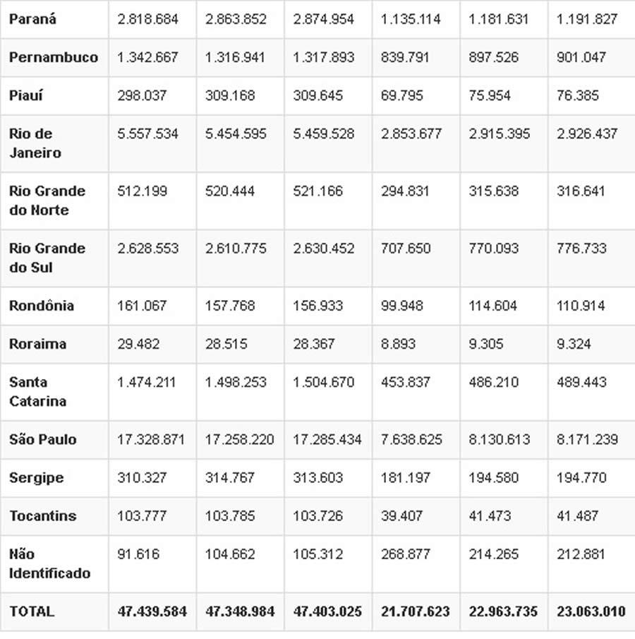 Assim como no mês passado, o Paraná foi o estado com o maior crescimento anual, com 56.270 mil novos beneficiários, seguido do Ceará (37.319 mil a mais) e de Santa Catarina (30.459 mil a mais).