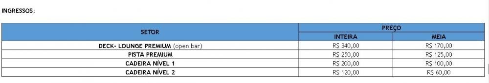 Ingressos: de R$ 60 a R$ 340 (ver tabela completa)