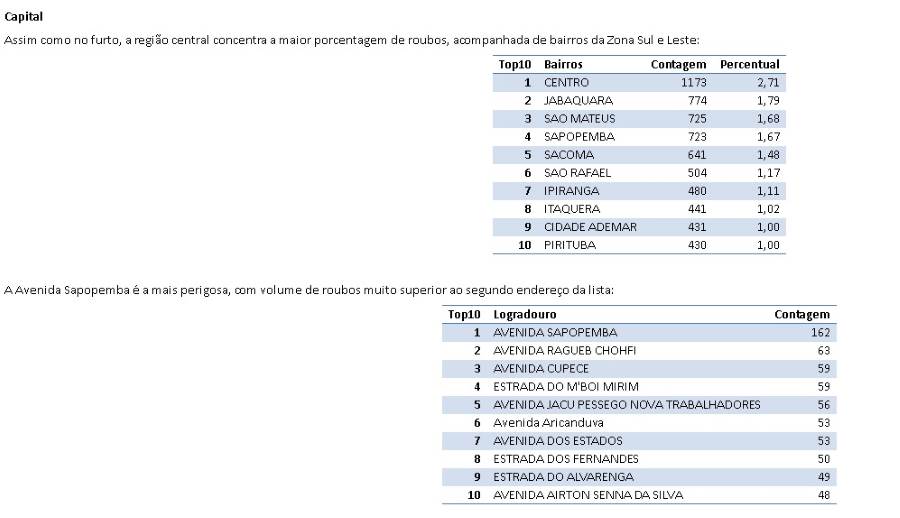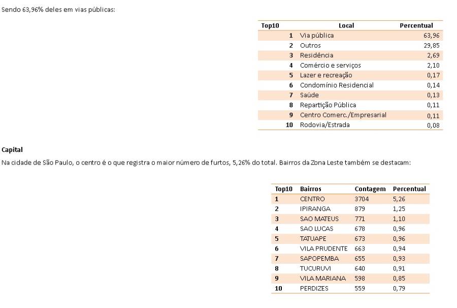 3. O número total de boletins de ocorrências registrados sob uma natureza criminal não representa a estatística criminal do Estado ou de determinada área ou região. A estatística em São Paulo é contabilizada de acordo com os procedimentos estabelecidos pela Resolução SSP nº 160/01 de 08 de maio de 2001, que criou o Sistema Estadual de Coleta de Estatísticas Criminais e pode ser consultada através do endereço eletrônico www.ssp.sp.gov.br."