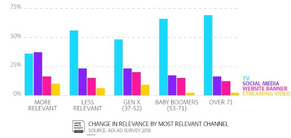 O State Of Digital Advertising constata ainda que a TV – ao mesmo tempo que é definida pelo público como um canal relevante para os anúncios – claramente passa a ser contestada no que se refere à importância das publicidades veiculadas (Figura 2). Entre os entrevistados que a enxergam como uma fonte de conteúdo relevante, quando questionados sobre a mudança de relevância nos últimos tempos, mais da metade pensa que os anúncios televisivos se tornaram “menos relevantes”.
