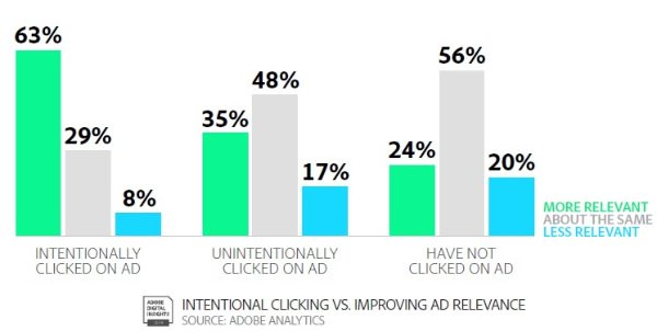 No entanto, para uma considerável parcela de consumidores norte-americanos, relevância não significa intenção real de clique: entre os que clicaram sem intenção num anúncio, 35% o consideravam relevante, enquanto entre a parcela dos que se negaram a clicar, 24% notaram relevância no conteúdo (Figura 4).
