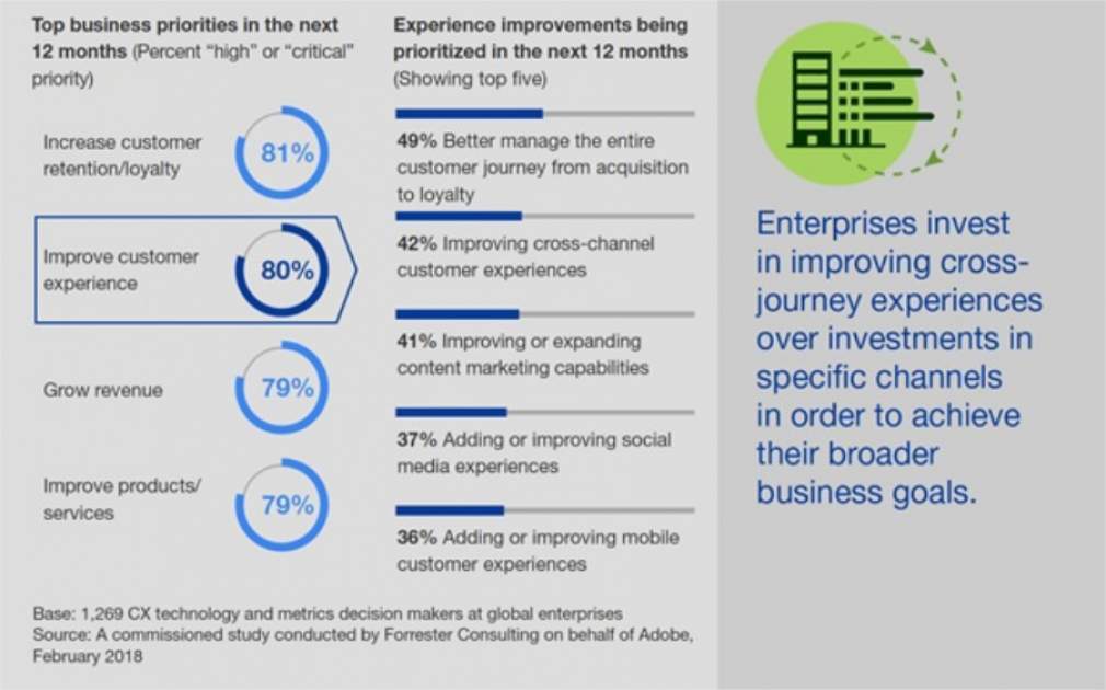 Com esses resultados em mente, os líderes entrevistados mostraram-se altamente inclinados a ampliar seus investimentos nos próximos 12 meses. Para 80% dos executivos ouvidos pela pesquisa, a prioridade é melhorar a experiência de seus consumidores; enquanto 81% focarão na retenção e fidelidade dos mesmos. Empatados com 79% estão foco no crescimento da receita e melhorias nos produtos e serviços.
