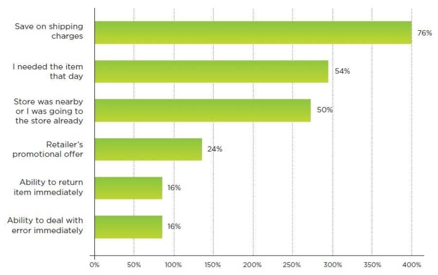 A empresa Bell and Howell divulgou um levantamento recente, nos Estados Unidos, sobre as razões pelas quais as pessoas realizam uma compra nessa modalidade. Mais de 70% dos entrevistados se identificam como compradores experientes de Click&Collect. Um dos principais motivos para a escolha é a agilidade ao adquirir um produto. Cerca de 88% dos clientes disseram preferir esse tipo de venda. Além de desejarem ter seus itens rapidamente, os consumidores têm uma vasta gama de produtos que antes apenas o e-commerce proporcionaria somados a rapidez da retirada em uma loja física.