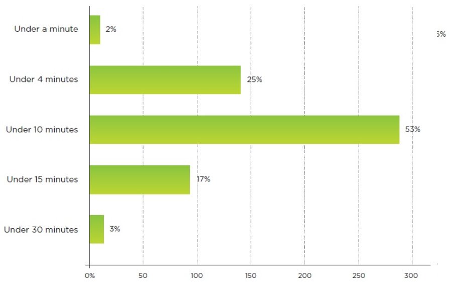Fazer o pedido online, retirar o produto na loja que escolher e quando quiser é o que o estimula o consumidor. Diferentemente de um processo comum, em que o e-commerce usa a loja física apenas como ponto de retransmissão da mercadoria, aqui, é ele quem tem o poder durante a jornada. Os entrevistados responderam qual era a duração aceitável de tempo no momento em que eles entravam na loja para buscar seus produtos. Ao todo, 53% desejam pegar o seu item em menos de 10 minutos e outros 25% esperam menos de quatro minutos.
