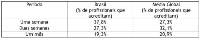 Período ideal para retorno sobre uma vaga de emprego (fonte: Pesquisa Robert Half)