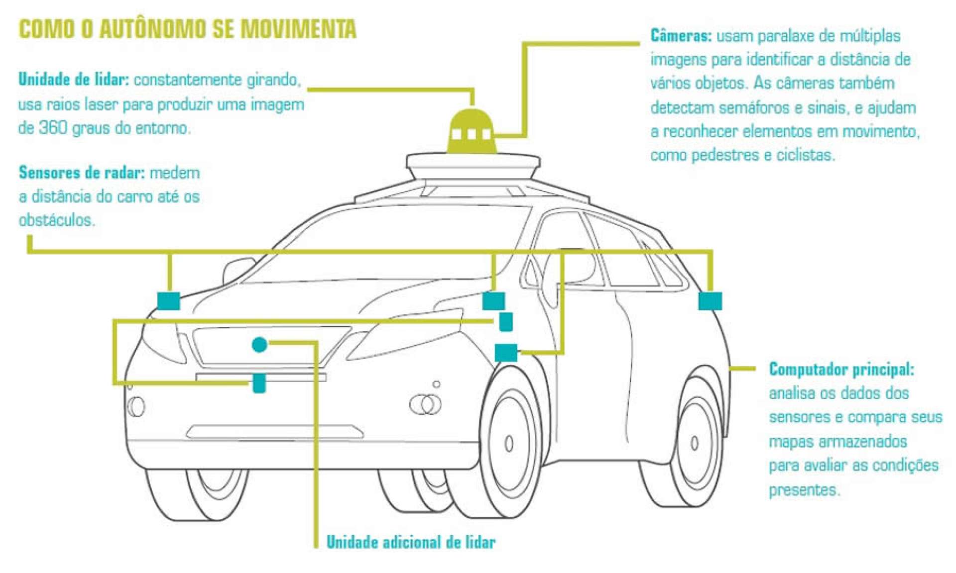 “Todo veículo autônomo conta com uma série de equipamentos tecnológicos como radares, lidares (radar que usa laser no lugar de ondas eletromagnéticas de rádio para mapear o entorno), sensores, câmeras, lasers, GPS, computadores, atuadores, além de visão computadorizada, que, ao atuarem juntos, fazem com que o carro ‘sinta’ o ambiente e navegue sem a intervenção humana”, comenta Emerson Feliciano, superintendente técnico do CESVI Brasil/MAPFRE.