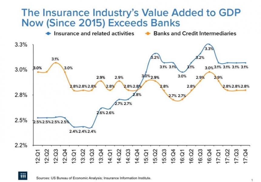 Abaixo, vídeo, e também gráfico extraído do mesmo, observando que, nos EUA desde 2015, o valor econômico agregado da indústria de seguros já supera os mesmos números do segmento bancário.