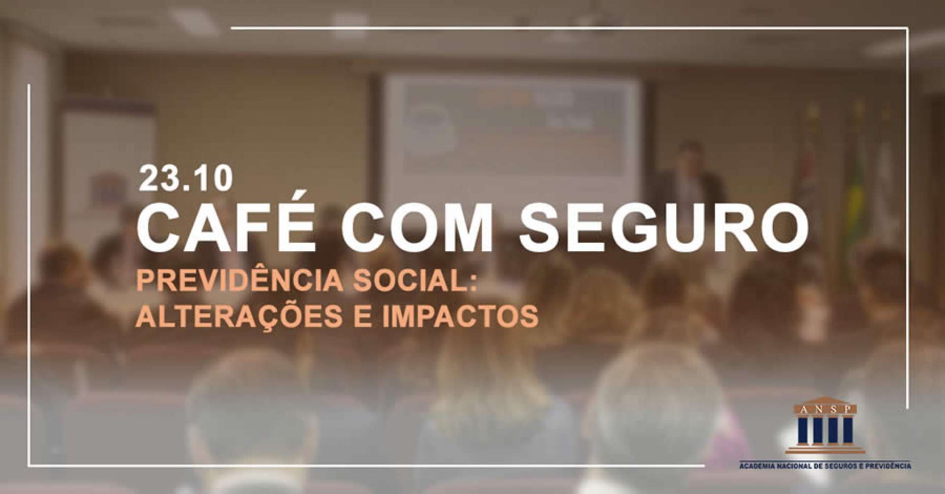 A Academia Nacional de Seguros e Previdência realizará, no dia 23 de outubro, mais uma edição do Café com Seguro, que debaterá "Previdência Social: Alterações e Impactos". O evento, que acontecerá no auditório do Sindseg-SP, tem como objetivo abordar a o cenário atual, perspectivas no Brasil, tendências do mercado e impactos nas entidades fechadas e abertas de Previdência Complementar.
