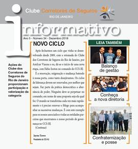 Está no ar a 34ª edição do informativo CCS-RJ, que marca a transição entre a diretoria atual e a recém eleita para o biênio 2019-2020. Um balanço da gestão de Jayme Torres, Amilcar Vianna e Luiz Mario Rutowitsch abre a publicação, relembrando eventos com lideranças do mercado e ações do Clube em prol dos direitos dos corretores de seguros.