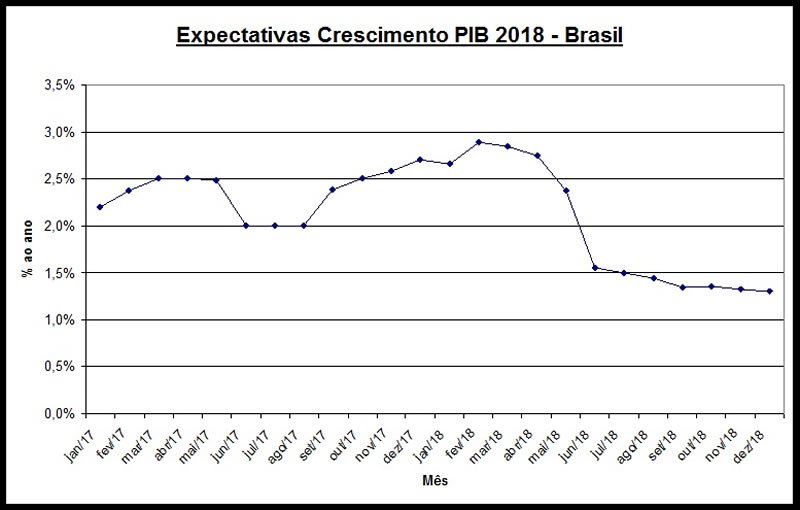 · Em praticamente todo o ano de 2017, a expectativa de crescimento para 2018 ficou relativamente estável, se situando entre 2,0% e 2,5%. Número razoável.