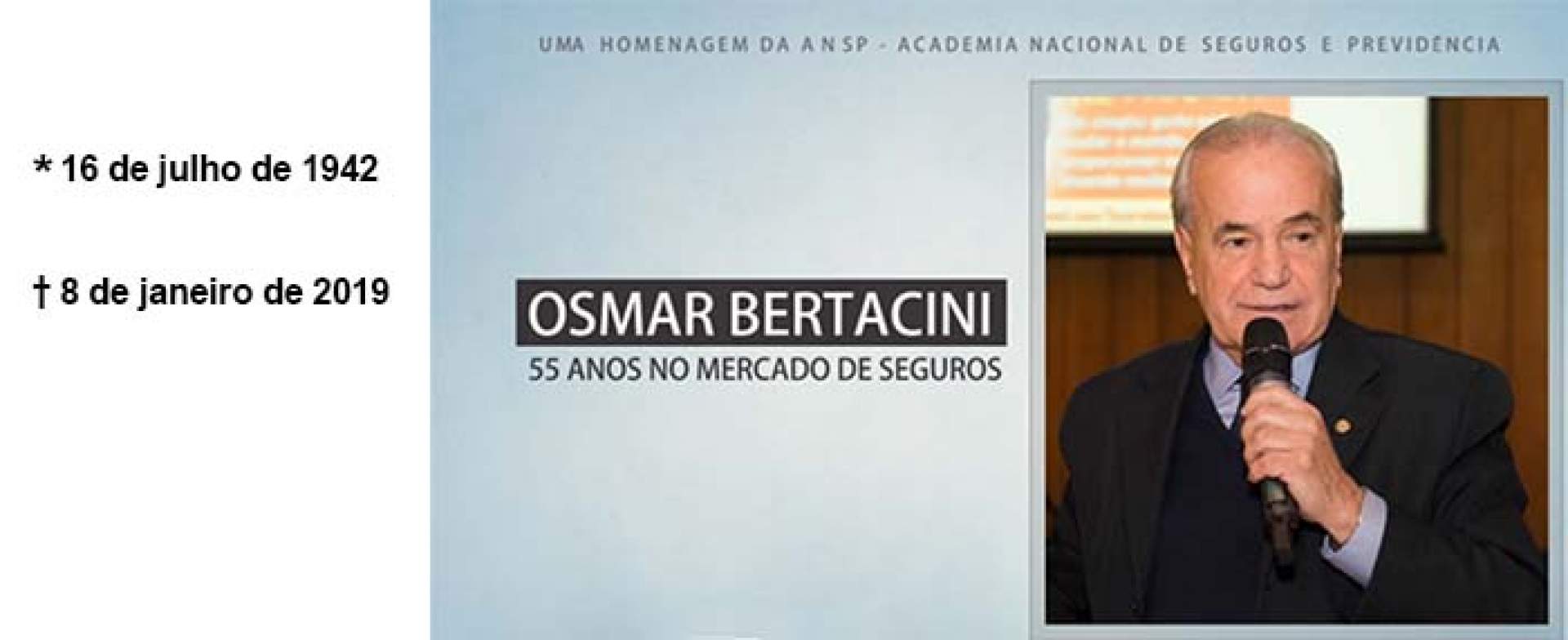 Com uma longa trajetória profissional dedicada ao Seguro, Bertacini atuou na Humana Seguros desde sua fundação em 1991. Na ANSP é acadêmico desde 2000 e o atual Diretor de Relações com o Segmento de Intermediação, além de ter atuado em vários cargos da diretoria da Academia. Uma das principais lideranças do setor de seguros brasileiro, Bertacini será lembrado pelo seu trabalho incansável em prol do crescimento do seguro de pessoas.
