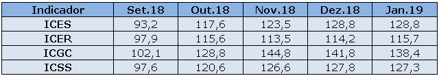 No primeiro mês de 2019, pelo quarto mês seguido, o mercado segurador brasileiro permaneceu otimista, já que todos os indicadores ficaram acima de 100 pontos.