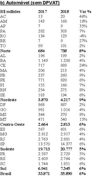 Os dados levantados pela Fenacor indicam ainda forte concentração da receita na região Sudeste, principalmente em função da pujança do mercado de São Paulo, que gerou, de janeiro a dezembro, o equivalente a 40,1% da arrecadação global no ramo Auto.